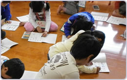 英語の正しい発音や身近な単語をテキストや会話の中で覚えたり、歌やゲームで体を動かしたりしながら楽しく覚えることができます。色々なことを覚えて成長するこの時期に、使える英語が身に付きます。
